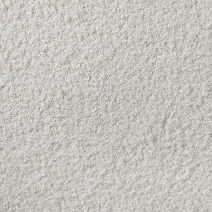 Introduce a little bit of glam flair to your bedroom with a modern upholstered bed. Featuring padded white fabric panels, the headboard is complete with molded trim and a horizontal stripe that glitters in the light. A matching vertical stripe on the low footboard is the perfect complement. A white finish is lightly textured on the panel footboard and rails, while trim is smooth and cool. The bed is complete with slats and center legs for added support and requires a foundation.